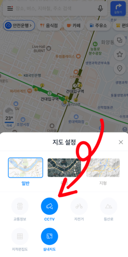 2. 모바일 네이버 지도 앱 실시간 cctv
